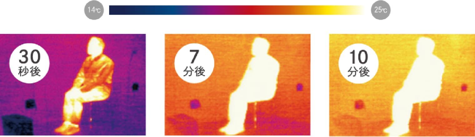 暖房の効果をサーモグラフで表現。約10分でからだの芯まであたたかに。*2