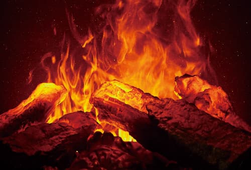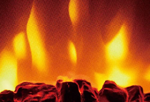 水蒸気のゆらめきと光の反射で、本物に限りなく近い立体的な炎を実現。