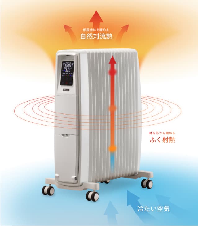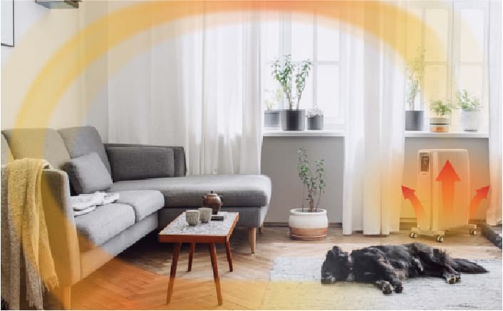 ヒーター側面から発する「ふく射熱」により、陽だまりのような快適な空間をつくり出します。