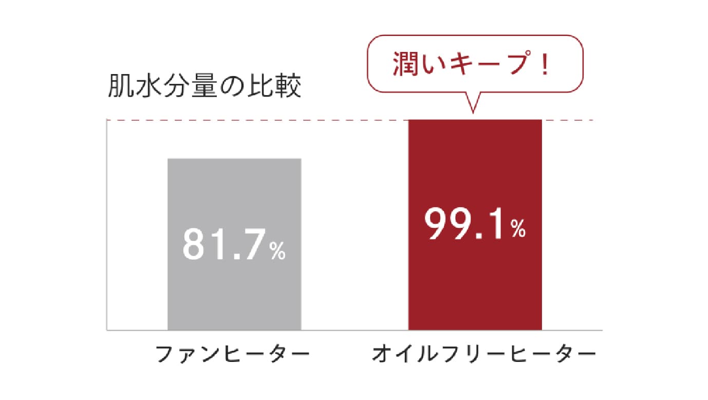 ファンヒーターとオイルフリーヒーターでの肌水分量の比較
