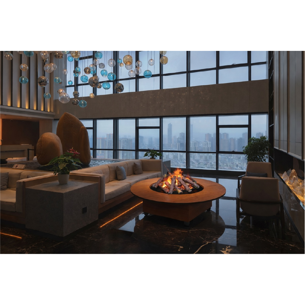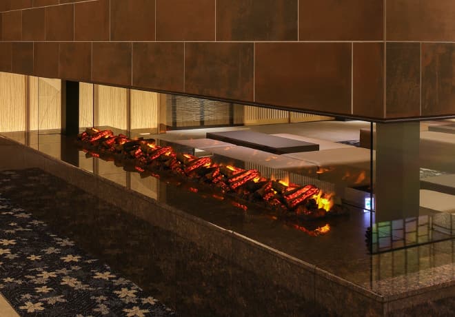 光の反射と屈折が生み出す、自然な炎のゆらぎ。薄型設計で、美しい空間演出をスマートに実現。