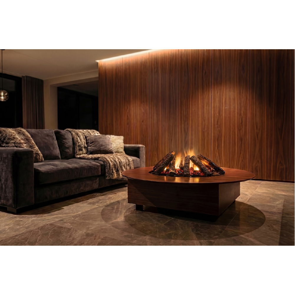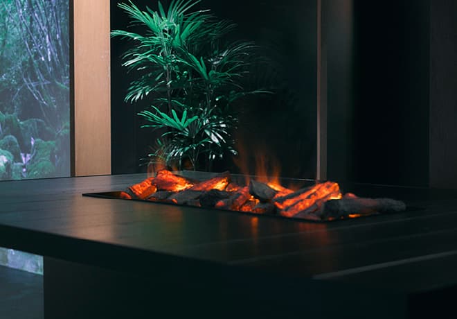 独自の特許技術が生み出す、限りなく本物に近い炎。薪のはぜる音まで再現した、五感に響く演出。
